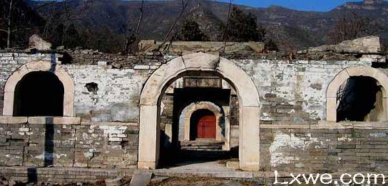 一进门就可以看到上书”菩提场”三个字,这里供奉的是毗庐舍那佛,门券是由汉白玉发券制成的很漂亮,院落西边有一通碑,碑上刻着文字是”勅建灵鹫禅寺记”是明朝正统四年(1439年)立.第一进院落里的大殿,顶部已塌,只剩下汉白玉制做的券门和四面墙壁,殿内匾书”灵鹫禅寺”四个大字,第二进院落里的大殿保存还好,大殿面阔三间,略显高大,殿中有两根石柱,石券门做的又宽又厚,还雕有花纹,宝瓶等纹饰,券门顶由汉白玉砌成,还刻有梵文佛经.殿内东西墙壁上各有大佛龛九个,四面墙壁上还有无数小佛龛,这里原来供奉着十八罗汉和五百罗汉,据记载这里应是罗汉堂.现在这里已毁坏得踪迹无存.殿内南墙上嵌有一块石碑.是中华民国十二年(1923年)时一位叫硅璋的人出资为此庙置庙产,以供奉香火之事所立.大殿后面还立有辽碑,元碑各一块,元碑为”大元至正七年(1347年)三月所立.东配殿三间南边有一座明代石碑,东面有侧门可供出入,可能是和门外百米处有一古井有关.据碑文记载:凿石百尺有五,深三十五米,可见古代在此高山上开凿如此之深井是多么不易.